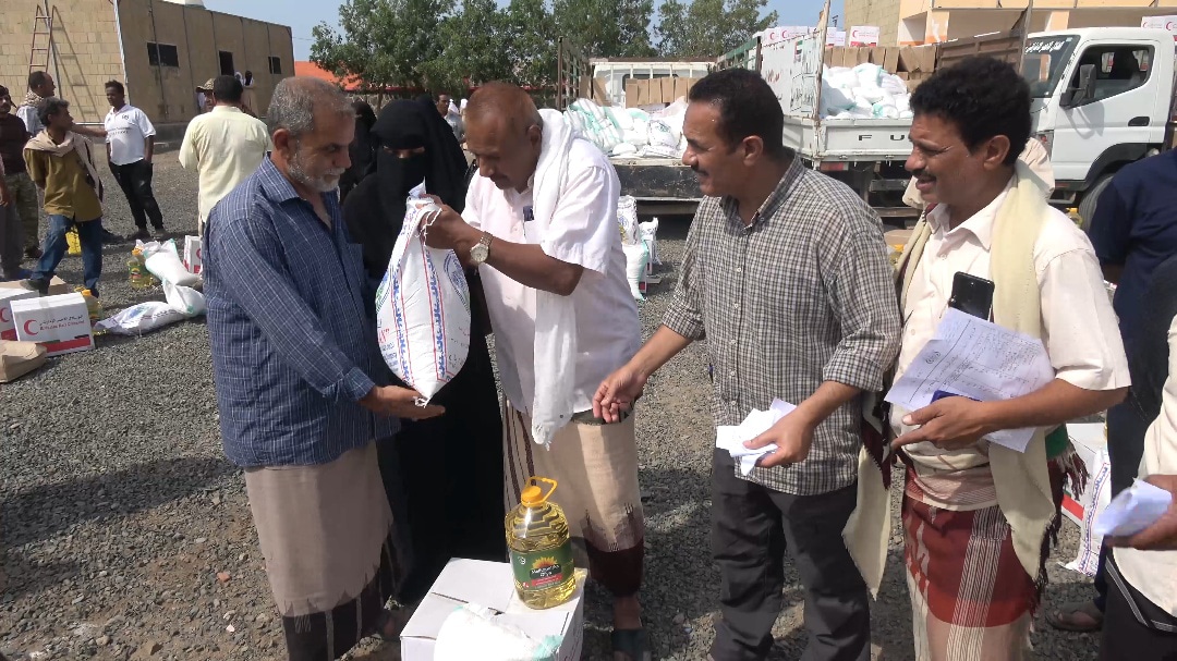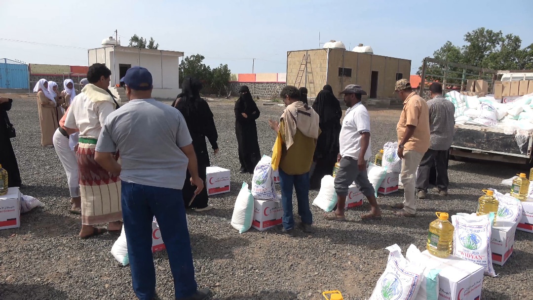 الخلية الإنسانية للمقاومة الوطنية توزع 400 سلة غذائية لمعلمي المخا